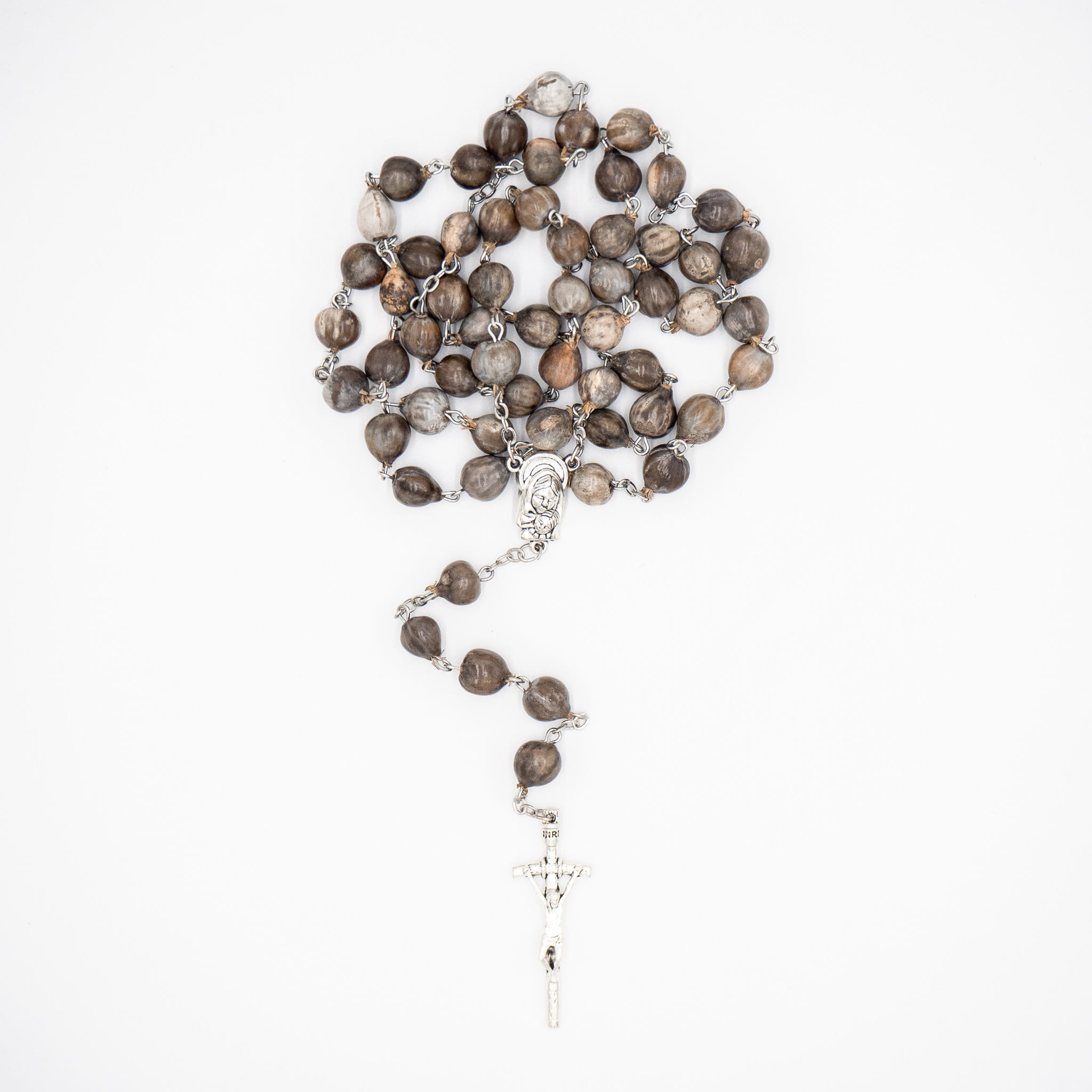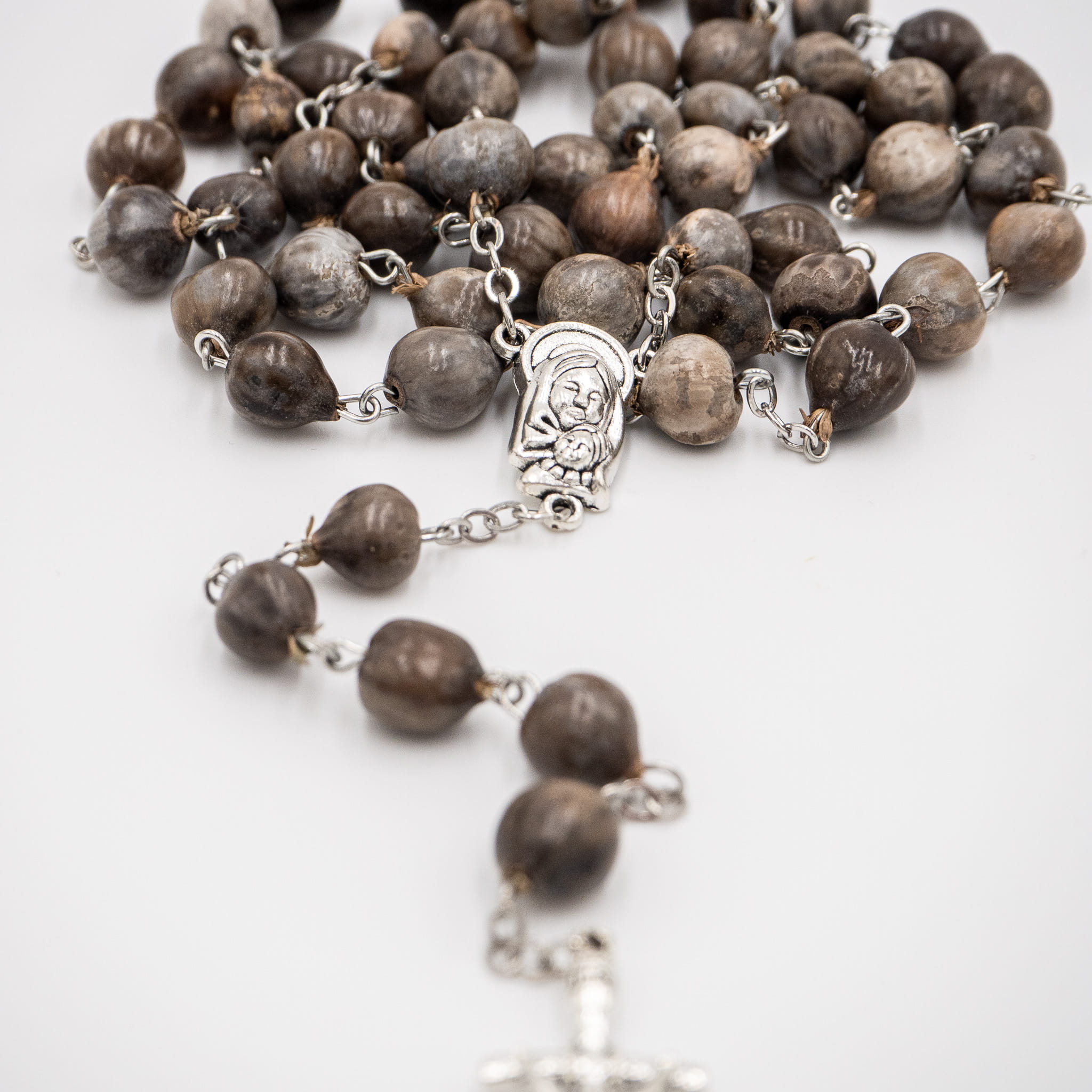 Precyzyjnie wykonany różaniec drewniany, który wyróżnia się naturalnym pięknem. Każdy koralik powstał z nasion łzawicy ogrodowej, co sprawia, że każdy różaniec jest jedyny w swoim rodzaju. Koraliki symbolizujące łzy Hioba, połączone zostały sztyftem ze stali nierdzewnej.