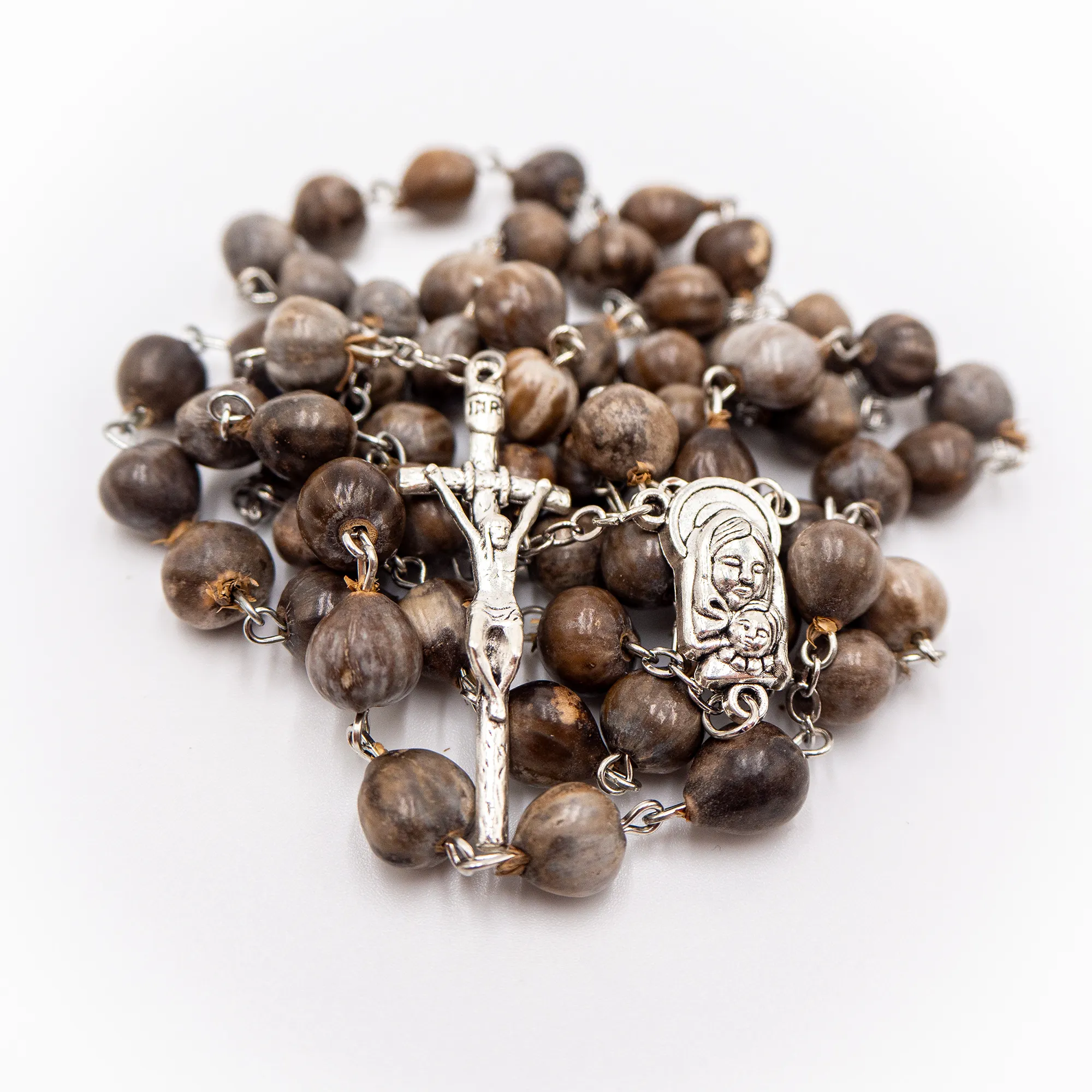 Naturalny różaniec wykonany z nasion łzawicy ogrodowej, idealny dla ceniących naturalne piękno. Precyzyjnie połączone koraliki i wizerunek Matki Bożej z Dzieciątkiem Jezus dodają mu wyjątkowego charakteru.