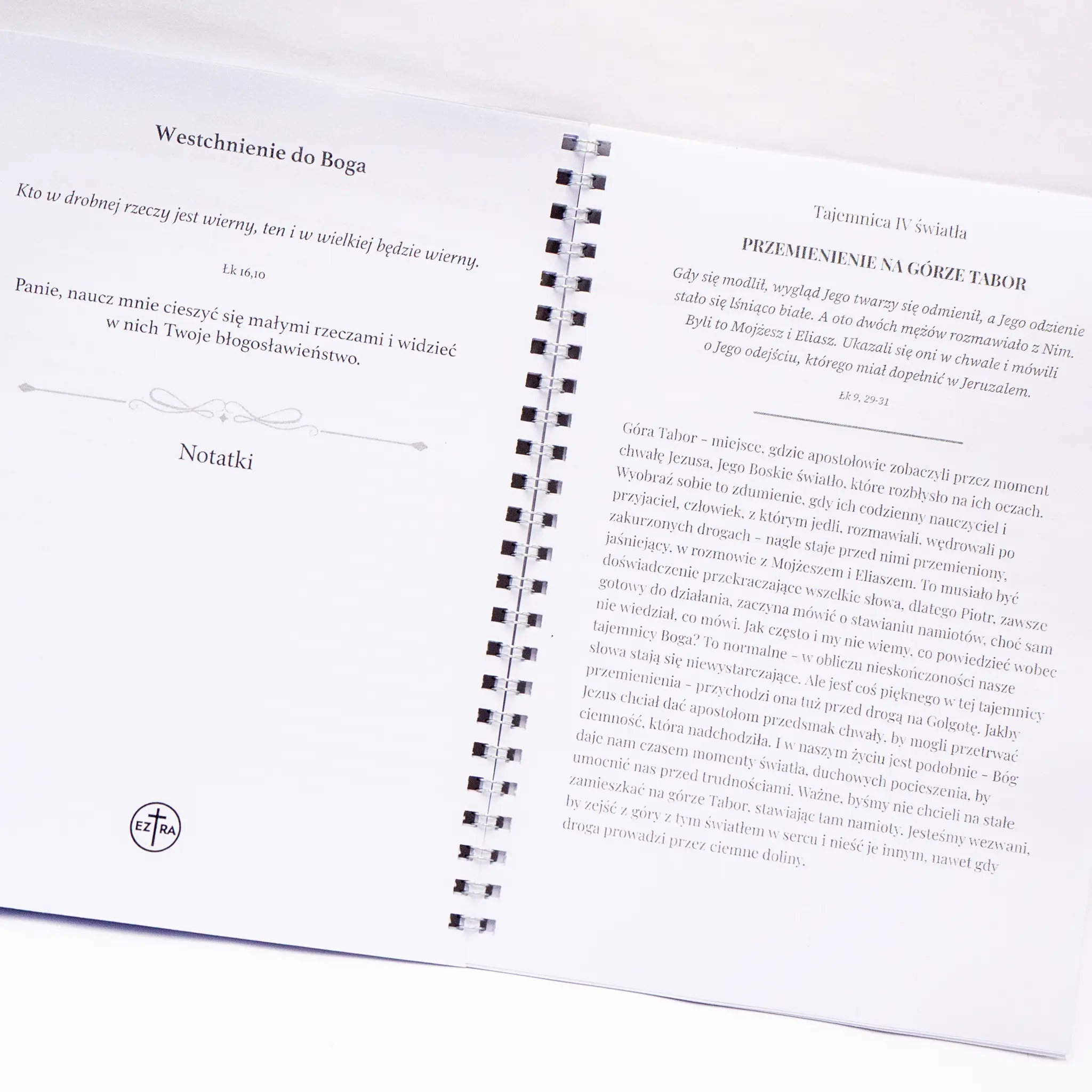 Wyjątkowa książeczka z rozważaniami wszystkich 20 tajemnic różańcowych napisanymi specjalnie dla Ciebie przez brata Ezrę. Zawiera osobistą dedykację oraz rozważania stworzone w Twoich intencjach. Wspaniały pomysł na prezent i forma wsparcia kanału „brat Ezra”.